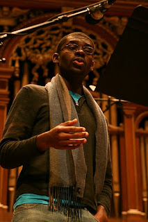 On Friday, Haitian-born Jean Bernard Cerin, who opened the concert with a moving rendition of "Grief," shared with us how important this concert was to him. It was an opportunity, he said, to do something for his people in Haiti. In the audience today was his mother. She had just flown in from Haiti to hear her son's performance. After the concert, Mrs. Cerin described the day of the earthquake. She said she was just entering a supermarket when the ground began to shake and the market itself began to undulate. She spoke of a hand of an angel, the woman next to her, who grabbed her arm and made her run back outside. A minute later, the market was flattened. When they could see again ("I was blinded") as the dust settled, her thoughts went to her daughters, who were at home. She returned home to find that half the house had collapsed during the quake. Miraculously, the family was in the other half of the house. All had survived. It was for these who survived and those that were lost that Jean Bernard sang...about weeping angels and the promise of a white dove.
